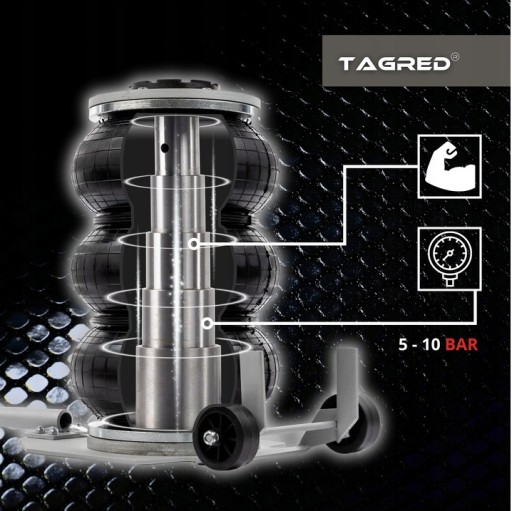 Podnośniki pneumatyczne TAGRED mają płytę siłownika zamkniętą, co daje większą stabilność. Uszczelnienie podnośnika jest solidne przez pewne połączenie płyty z miechem.