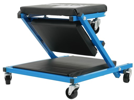 W kilka sekund zamienisz tę leżankę w wygodny taboret warsztatowy. Musisz coś zrobić przy drzwiach? Nie ma problemu - rozkładasz siedzisko i masz wygodne siedzenie!