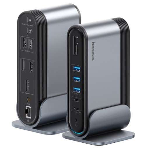 - Model: Baseus UnionJoy 17-Port Triple-Display Docking Station Space Grey(USB-C to HDMI4K@60Hz*2+DP4K@60Hz*1+USB3.0*3+USB-C3.0*2+USB2.0*2+PD*1+PC*1+RJ45*1+SD/TF*1+3.5mm*1+DC*1)
