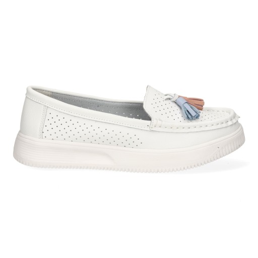 MOKASYNY DAMSKIE SERGIO LEONE SP015 BIAŁE SKÓRA NATURALNA