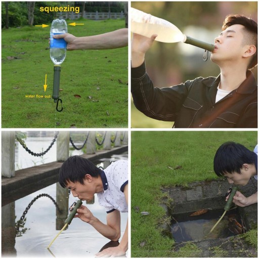 Przenośny Filtr Do Wody Survival Oczyszczacz Słomy Camping Emergency Gear Green