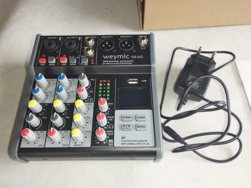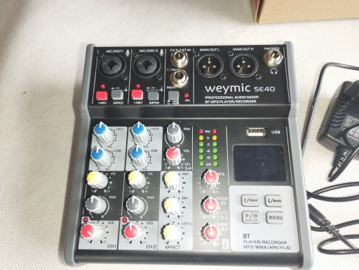 - WEYMIC se-40 DJ Konsola kontroler mikser z interfejsem audio USB 4-kanałowy mikser ze sprawdzonym dużym zapasem mocy. 2 wejścia mikrofonowe/liniowe i jakość dźwięku na poziomie studyjnym. Zasilanie Phantom 48 V - podłącz do laptopów, komputerów, sprzętu dźwiękowego - działa na komputerach Mac i PC, studyjnych mikrofonach pojemnościowych