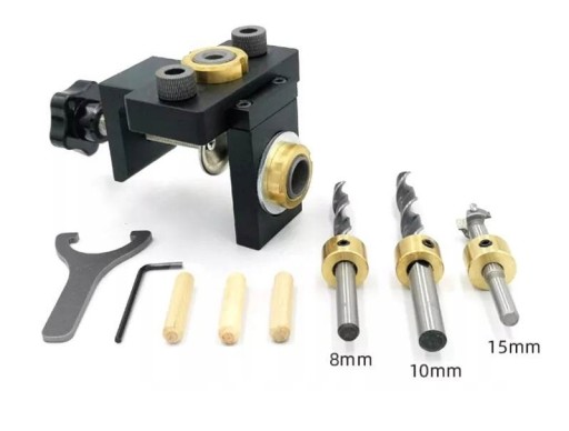 - Szablon 3 w 1 to szablon, który ułatwia wiercenie w drewnie, płycie wiórowej, MDF itp. Idealnie nadaje się do tworzenia połączeń mimośrodowych z użyciem kołków drewnianych, może też być użyty do wiercenia pionowego.