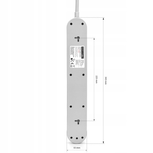 Posiada również podświetlany wyłącznik dla łatwiejszego zarządzania zasilaniem. Długość kabla 1,5m umożliwia wygodne umiejscowienie listwy w przestrzeni domowej lub biurowej.
