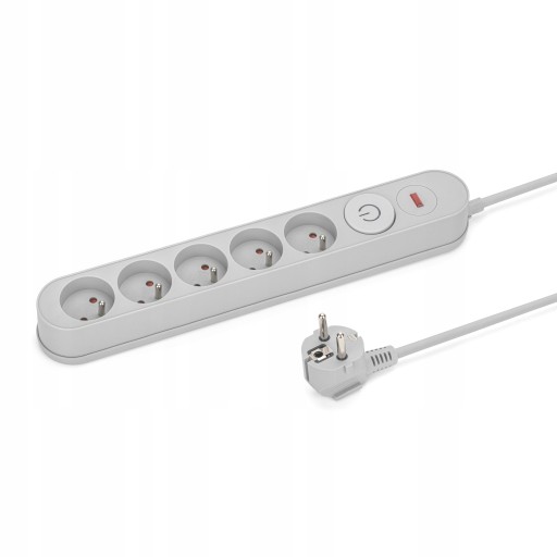 Listwa przeciwprzepięciowa z 5 gniazdami w kolorze szarym to niezbędne urządzenie do ochrony Twoich urządzeń elektronicznych przed nagłymi przepięciami.