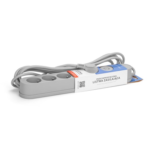 LISTWA ZASILAJĄCA PRZEPIĘCIOWA PRZECIWPRZEPIĘCIOWA 5 GNIAZD 3m SZARA