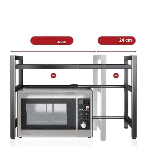 ☀ 【2-stopniowy regał do przechowywania】długość regulowana w zakresie 40-64 cm, wysokość: 43 cm, szerokość: 40 cm. Wysuwana kuchenka mikrofalowa zapewnia dodatkową przestrzeń do przechowywania dzięki prostej regulacji uchwytu i można ją bez problemu dopasować do rozmiaru prawie każdej kuchenki mikrofalowej.