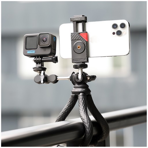 Statyw giętki Ulanzi FT-01 ma mocowanie na standardowy gwint 1/4 cala więc przymocujesz do niego większość uchwytów na telefon, kamer i aparatów będących na rynku.