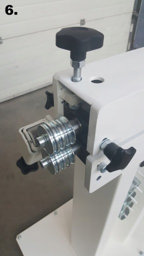 Nowatorskim rozwiązaniem jest demontowalna przystawka - skręcarka, służąca do wyginania prętów i płaskowników w koła. Ten zestaw przystosowany jest do prętów fi 5,6,8.