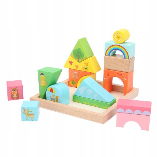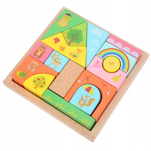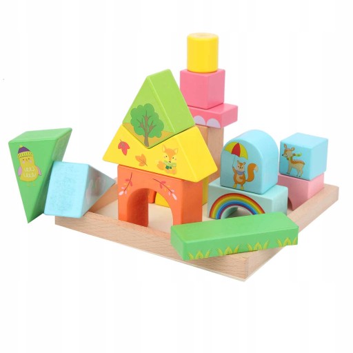 1. Elementy kreskówek sceny, odpowiednie dla małych rączek do budowania różnorodnych drewnianych ciekawych bloków scen.