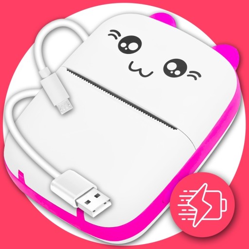 - MINI DRUKARKĘ TERMICZNĄ DRUKUŚ W RÓŻOWYM KOLORZE