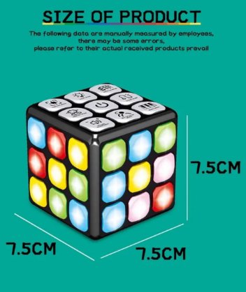 - Wystarczy nacisnąć przycisk TRYB ŚWIATŁA i TRYB MUZYKI. Rozmiar kostki flash to 7,5 x 7,5 x 7,5 cm (3 * baterie AAA nie są dołączone).