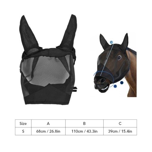 Funkcja:1. ODPORNOŚĆ NA BITE: osłona twarzy konia z osłoną uszu, chroni oczy konia przed ukąszeniami owadów, praktyczna i użyteczna