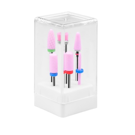 Zestaw frezów do paznokci, ceramiczne, do manicure, pedicure – 7 szt różowe
