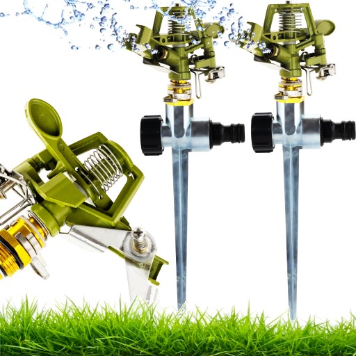 ✅ 2 x ZRASZACZ OGRODOWY PULSACYJNY OBROTOWY 360° METALOWY REGULOWANY POLOWY