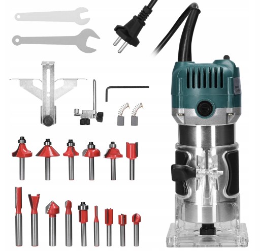 - ZESTAW DODATKOWYCH AKCESORIÓW: W zestawie znajduje się 15 różnych rodzajów frezów oraz podstawy prowadnicy zakończenia i linijki prowadzące do przycinania, co sprawia, że jest to kompletny zestaw gotowy do pracy. Dodatkowo, dwie szczotki węglowe i klucze zwiększają wygodę użytkowania i konserwacji.
