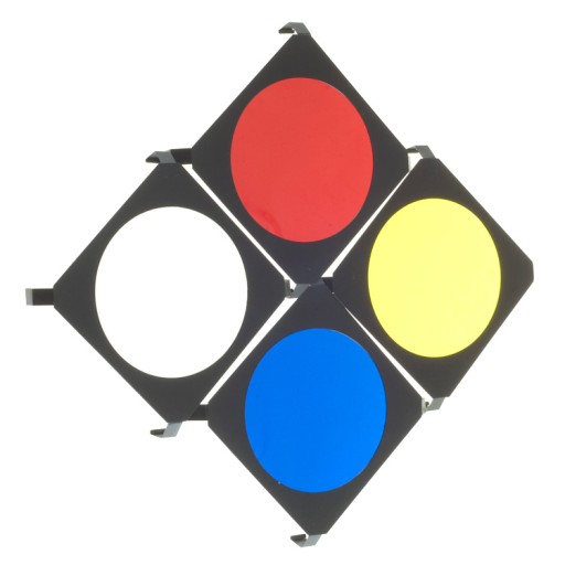 - Filtry w kolorach: żółty, niebieski, czerwony i biały (kalka rozpraszająca)