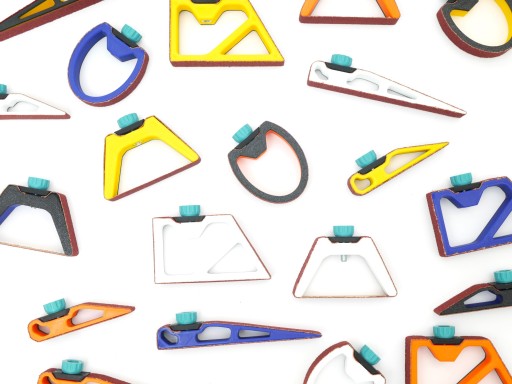 Zestaw mini bloków do szlifowania precyzyjnego. Bloki składają się z plastikowych elementów na których umieszczamy papier ścierny (brak w zestawie, należy dokupić papier ścierny w arkuszach i odciąć paski o szerokości 16mm). Metalowa nakrętka osadzona w każdym bloku i śruba metalowa śruba M5 zapewniają trwałość i wytrzymałość narzędzia. Na śrubie znajduje się plastikowa nakrętka która ułatwia dokręcanie i odkręcanie. Zestaw składa się z 5 unikatowych i uniwersalnych przyrządów opracowanych przez Proste Części.