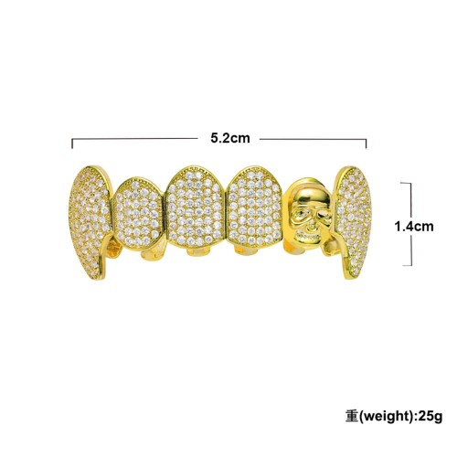 18k Micro Cyrcon Crystal Górne I Dolne Grille Na Zęby Halloween Prezenty Złoto