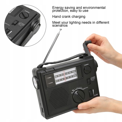 1. MULTI BAND: profesjonalne radio awaryjne, w tym radio wielozakresowe, FM, AM, WB, aby spełnić różne potrzeby, wbudowane głośniki wysokiej jakości, stabilne połączenie.