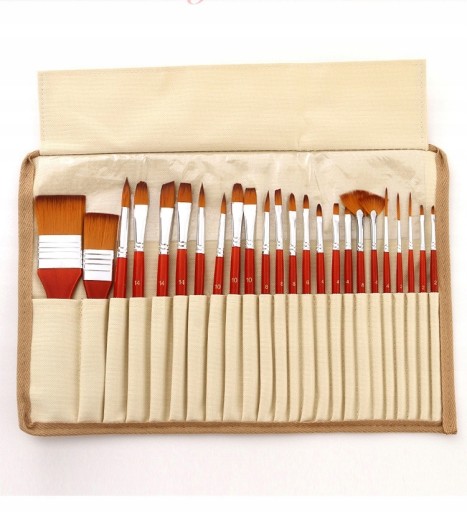 24 pędzli różnych kształtach i rozmiarach