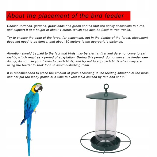 1. DUŻA POJEMNOŚĆ: Unikalna konstrukcja karmnika dla ptaków jest wygodna dla ptaków do zatrzymania się i jedzenia, z dużą pojemnością i wygodnym karmieniem.