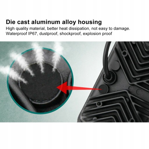 3. Wysoka jakość: ten reflektor LED przyjmuje obudowę ze stopu aluminium odlewanego ciśnieniowo, trwały materiał, lepsze odprowadzanie ciepła, niełatwe do uszkodzenia. Wodoodporny IP67, pyłoszczelny, odporny na wstrząsy.