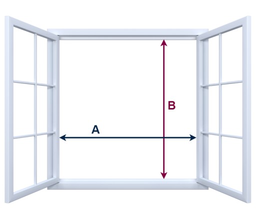 To proste! Otwórz okno. Zmierz szerokość (A) i wysokość (B) otworu okiennego tuż przy uszczelce. Otrzymany wymiar podaj nam z dokładnością do 0,1 cm.