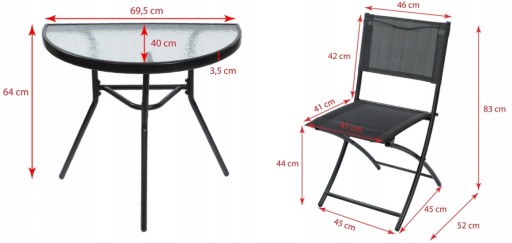Zestaw mebli ogrodowych, który z powodzeniem sprawdzi się na niedużym balkonie lub tarasie. Zaletą zestawu jest możliwość złożenia krzeseł, a małe gabaryty ułatwiają przechowywanie mebli poza sezonem.