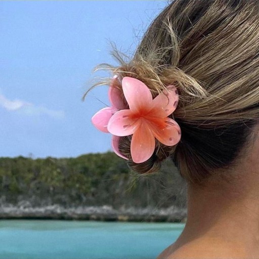 Заколка для волос с пряжкой, большой цветок, цветок в стиле бохо, гавайский, темно-розовый, на лето