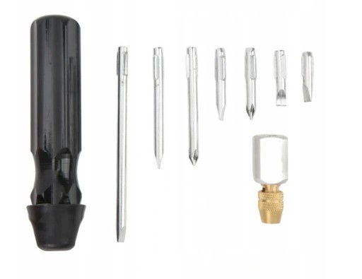 4. Śrubokręt: pręt regulacyjny o długości 485 mm umożliwia regulację trudno dostępnych śrub do powietrza lub mieszanki paliwowej, a także może być używany do innych regulacji w pojeździe.