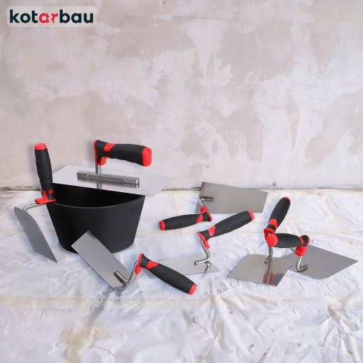 - Narzędzia do prac gipsowych mają ergonomiczne gumowe uchwyty.