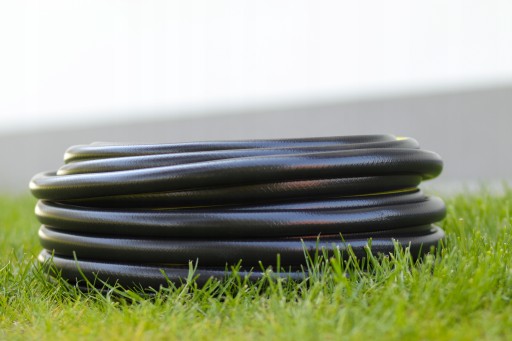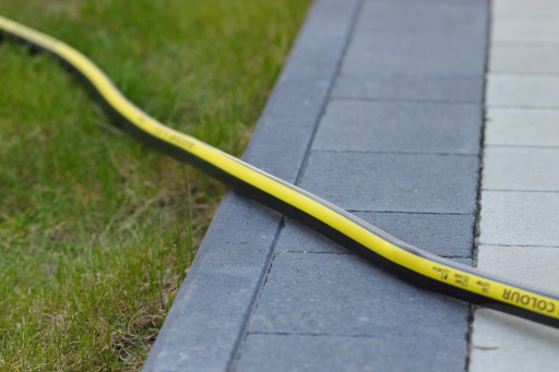 Wąż ogrodowy wyróżnia się kolorem, co sprawia, że odznacza się on na tle zielonego trawnika. Dzięki temu nie ma obaw, że go nie zauważysz i się potkniesz.