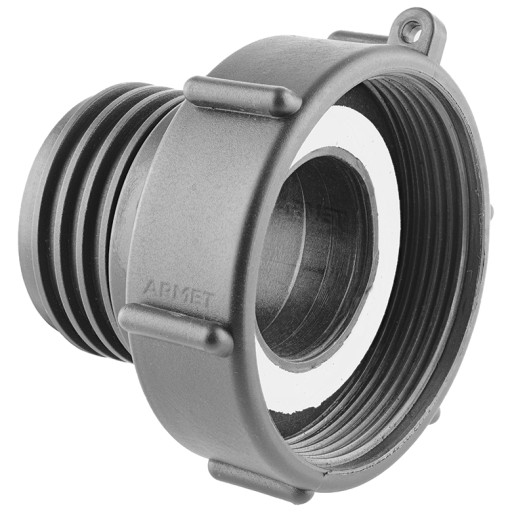 Złącze do zbiornika 1000 l z standardowym gwintem wkrętnym (zewnętrznym) S60x6 oraz grubym gwintem nakrętnym (wewnętrznym) DN80.