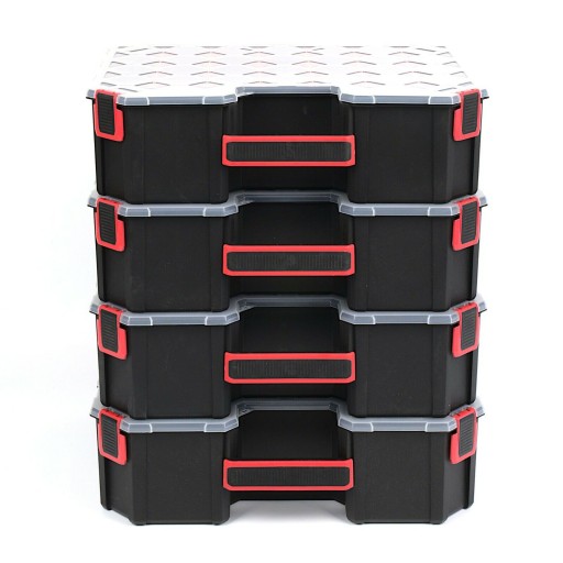 ⭐ Skrzyneczki posiadają mocne i wygodne uchwyty oraz solidne zapięcia wykonane z ABS, dzięki czemu możemy w bezpieczny sposób przenosić i transportować organizery z całą ich zawartością.