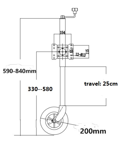 Маневренное опорное колесо для прицепа кемпингового эвакуатора 500 кг fi48