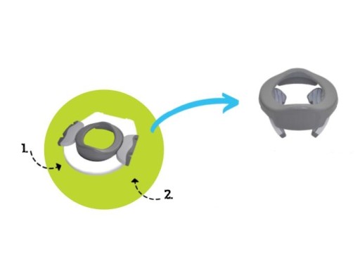 Jest to wielokrotnie nagradzany produkt typu 2w1 – nocnik dla dziecka i jednocześnie nakładka na toaletę, która pasuje do każdego typu muszli.