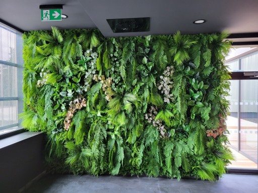 mata ze sztuczną zielenią na ściany imitująca naturalną roślinność.