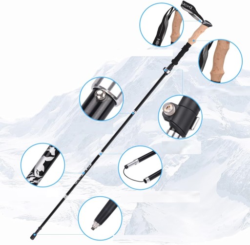 Kijki turystyczne mają tylko 37 cm po złożeniu i można je regulować. Można szybko skrócić lub wydłużyć kijki narciarskie w zakresie 115–135 cm. Można je łatwo złożyć, gdy nie są używane, są małe, lekkie i można je przechowywać w plecaku.