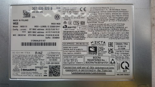 Nawigacja, multimedia, MMI, MIB3-- VW (wiele modeli) nr. 3G1035820B, oryginał z demontażu, stan-foto, legalny, posiada ślady użytk owania, cena za 1 szt.