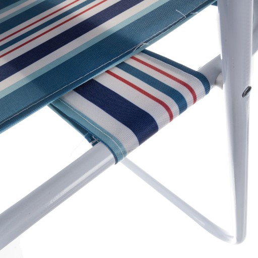 - DODATKOWO WZMOCNIONE SIEDZISKO – krzesło turystyczne posiada specjalne, dodatkowe wzmocnienie w postaci pasa z bardzo mocnej tkaniny pod siedziskiem, które sprawia, że żywotność produktu będzie o wiele dłuższa. Ponadto dodatkowo zabezpiecza siedzącą osobę i sprawia, że krzesło udźwignie większy ciężar.