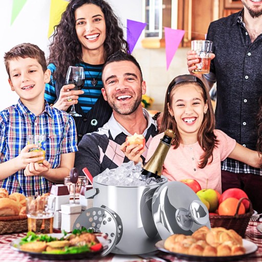 ➡️ Z pojemnością 3 litrów, ten pojemnik na lód ze stali nierdzewnej pomieści wystarczającą ilość lodu, aby schłodzić ulubione alkohole czy napoje na każdej imprezie. Idealnie sprawdzi się zarówno podczas imprez w domu, jak i na zewnątrz, na grillu czy pikniku.