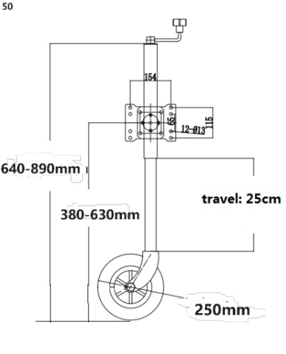 Колесо опорное маневренное для прицепа кемпингового эвакуатора, 200 кг, диаметр 48, надувное