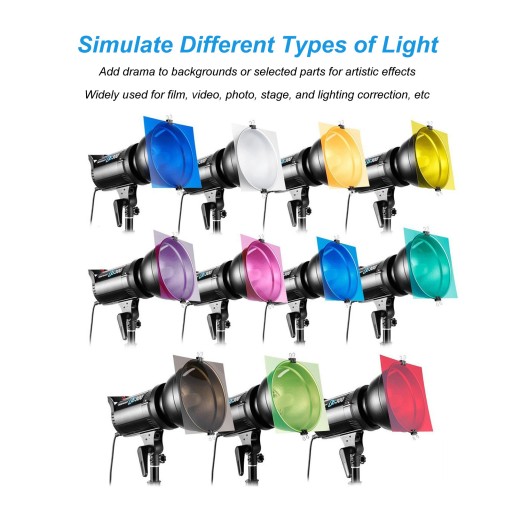 1. Profesjonalny: kolorowe folie filtrujące do tworzenia różnych kombinacji filtrów, takich jak fajne efekty, korekcja kolorów, idealne do studyjnych lamp stroboskopowych LED.
