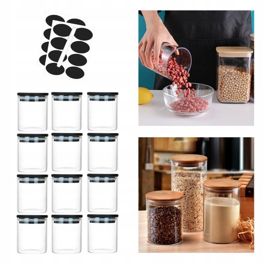 Szklane Kanistry Kuchenne Słoiki Do Przechowywania Butelek Na żywność Z Hermetyczną Pokrywką 12 . /opakowanie