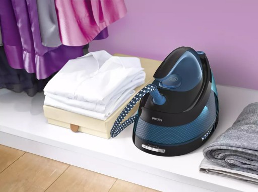 Żelazko można zablokować w stacji bazowej na czas przenoszenia, co przy okazji zmniejsza ryzyko przypadkowego dotknięcia gorącej stopy.
