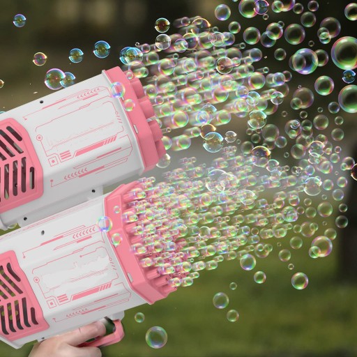 ✅69-otworowy pistolet do baniek mydlanych Automatyczna maszyna do baniek mydlanych Bazooka Kolorowy jasnoróżowy