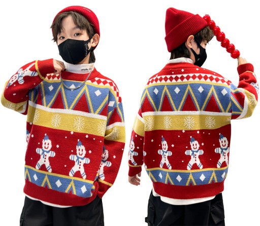 DZIECIĘCY SWETER ŚWIĄTECZNY CZERWONY BAŁWANKI ŚWIĄTECZNE WZORY ŚWIĘTA