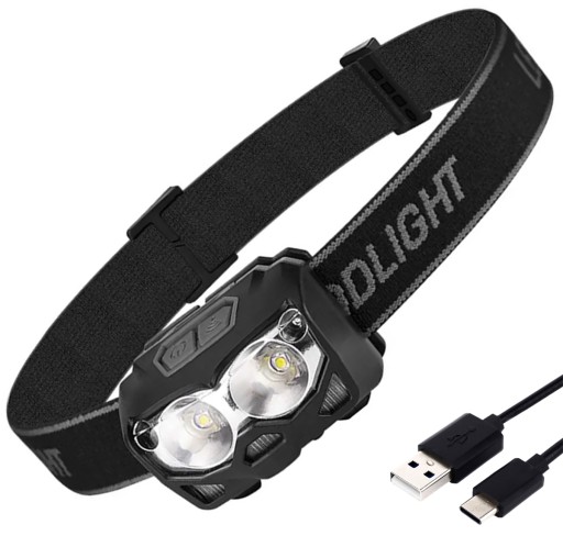 ✅ Kompaktowa latarka czołowa z regulowanym paskiem na głowę.