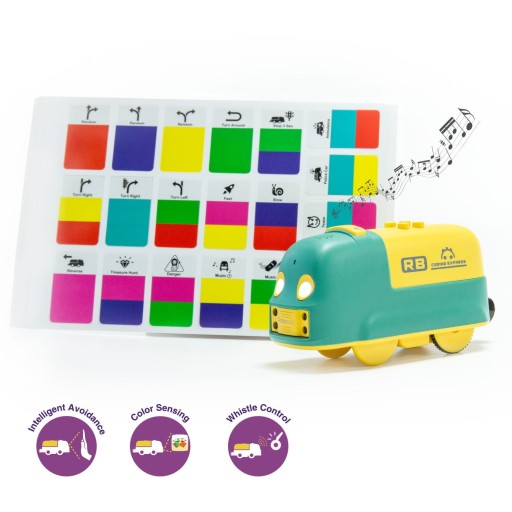 Jest to bezekranowa, przyjazna dla oczu, trwała i bezpieczna zabawka do programowania, która może towarzyszyć dzieciom w dorastaniu prowadząc je do niesamowitego świata robotyki i kodowania. Wagonik wyposażony jest w czujnik dźwięku i czujnik podczerwieni, dzięki czemu możesz przyspieszyć kolejkę przy pomocy gwizdka, lub skorzystać z funkcji omijania przeszkód lub podążania za obiektem.